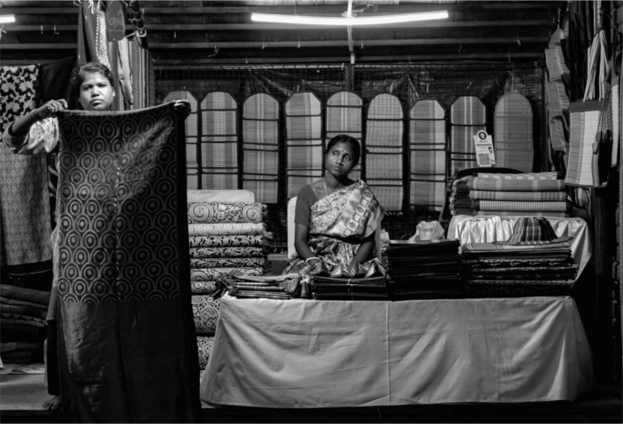 Rekha and Nisha grew up in their father’s textile shop, surrounded by the rich smell of freshly dyed fabrics. After their father passed away, the shop was left in Rekha's hands. Deeply rooted in tradition, she continued crafting the intricate, handwoven designs their father had taught her, refusing to change anything about the shop or its heritage.